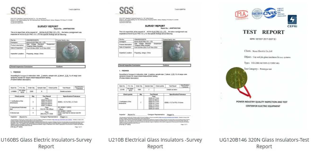 For each glass insulator production processing, we have a complete QC system for the chemical composition, physical and electrical properties. After production, all glass power line insulators will be tested according to related standards, and the ex-factory test reports will be sent along with shipment documents.