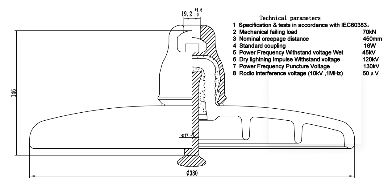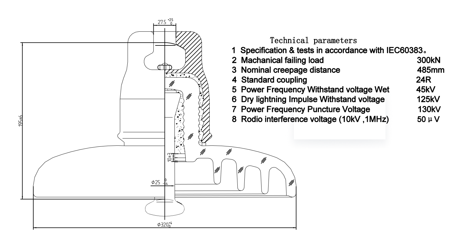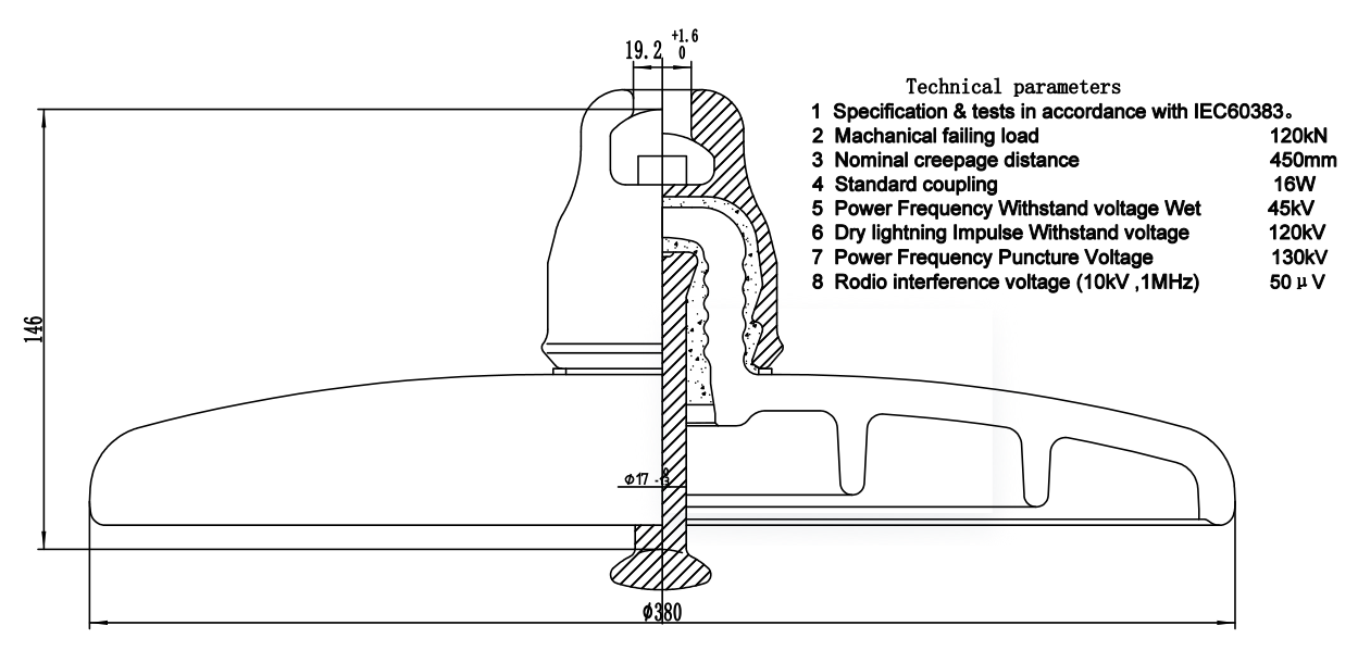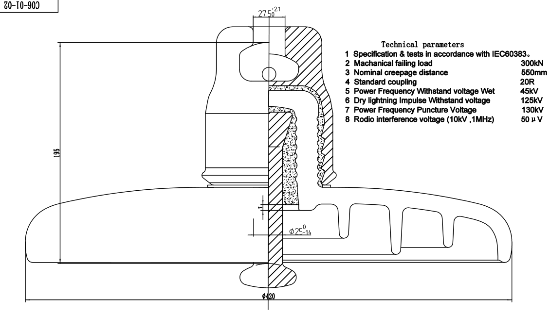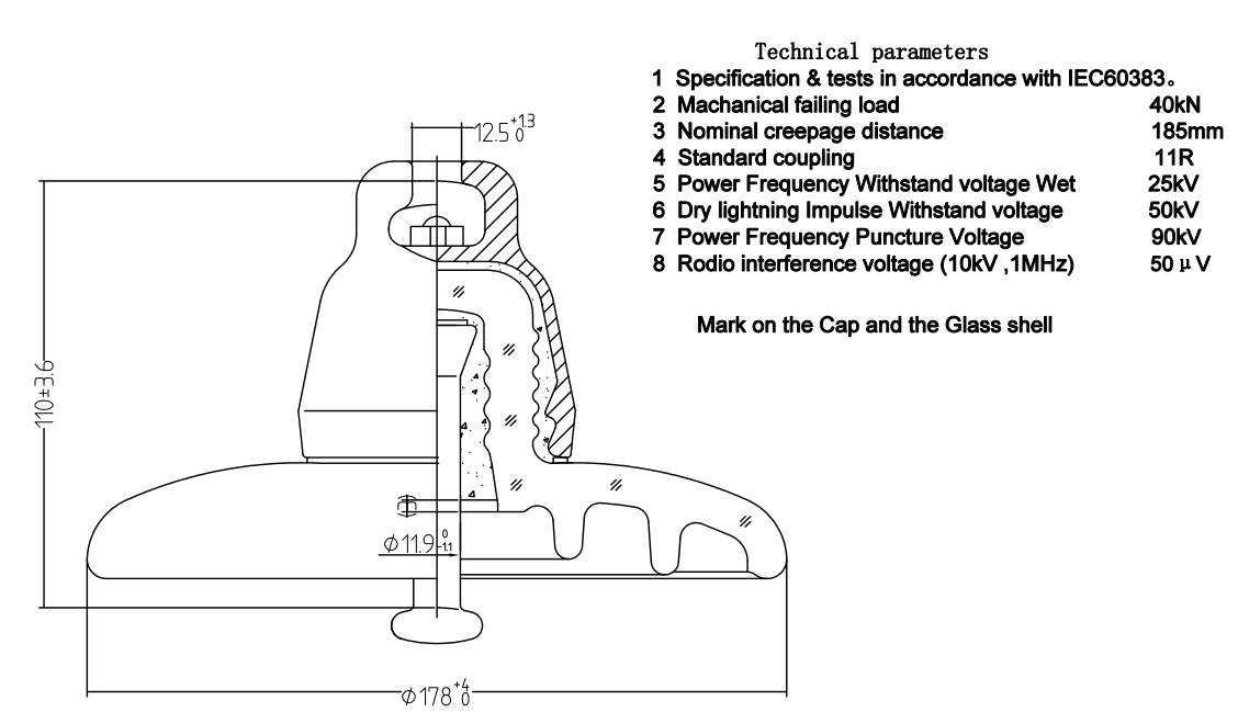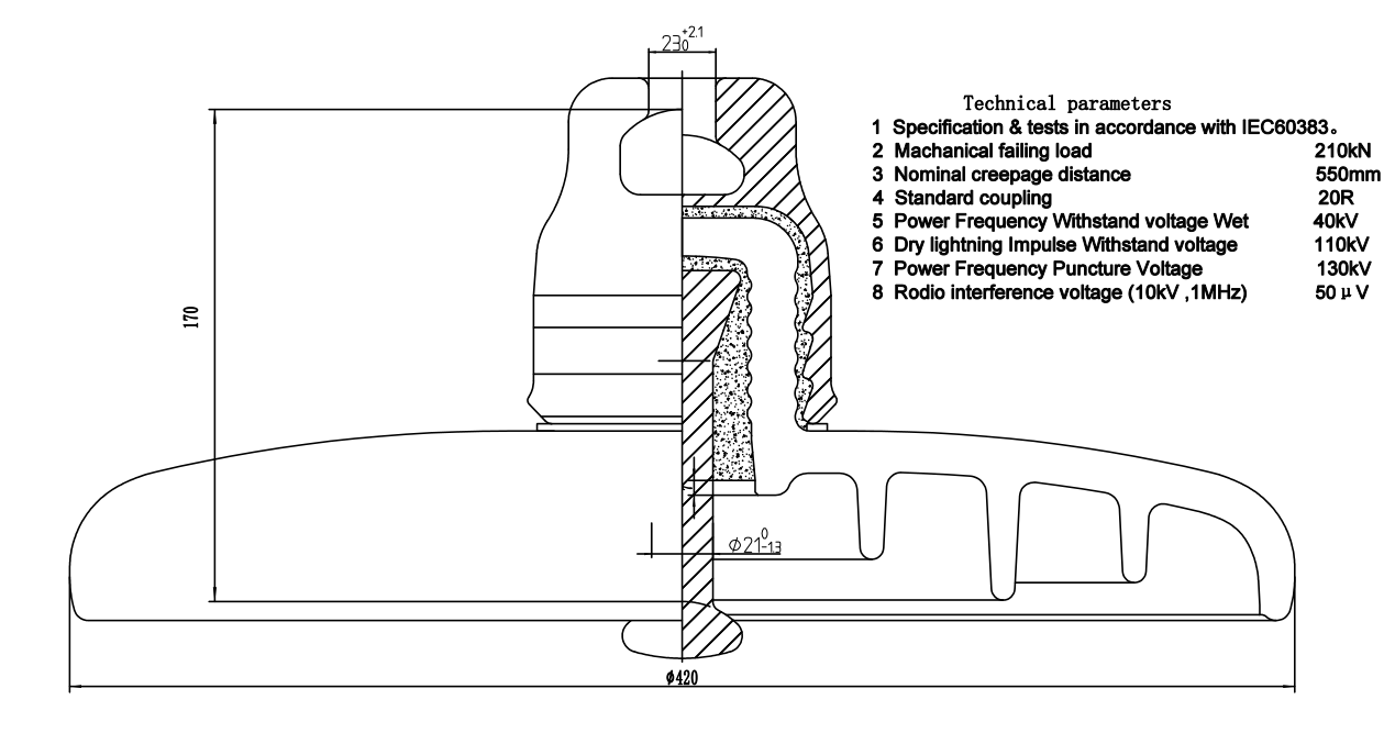 U120b cách điện thủy tinh, cách điện ghim sứ, cách điện Composite Silicone